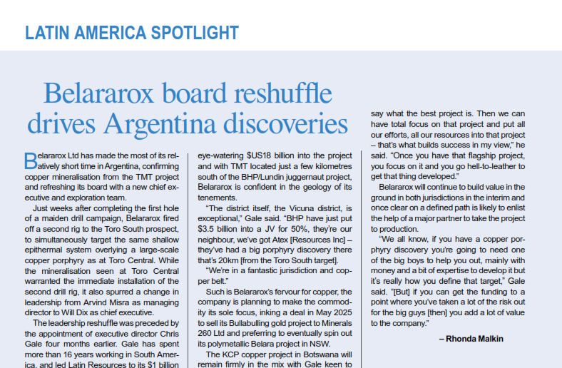 PayDirt - Belararox board reshuffle drives Argentina discoveries